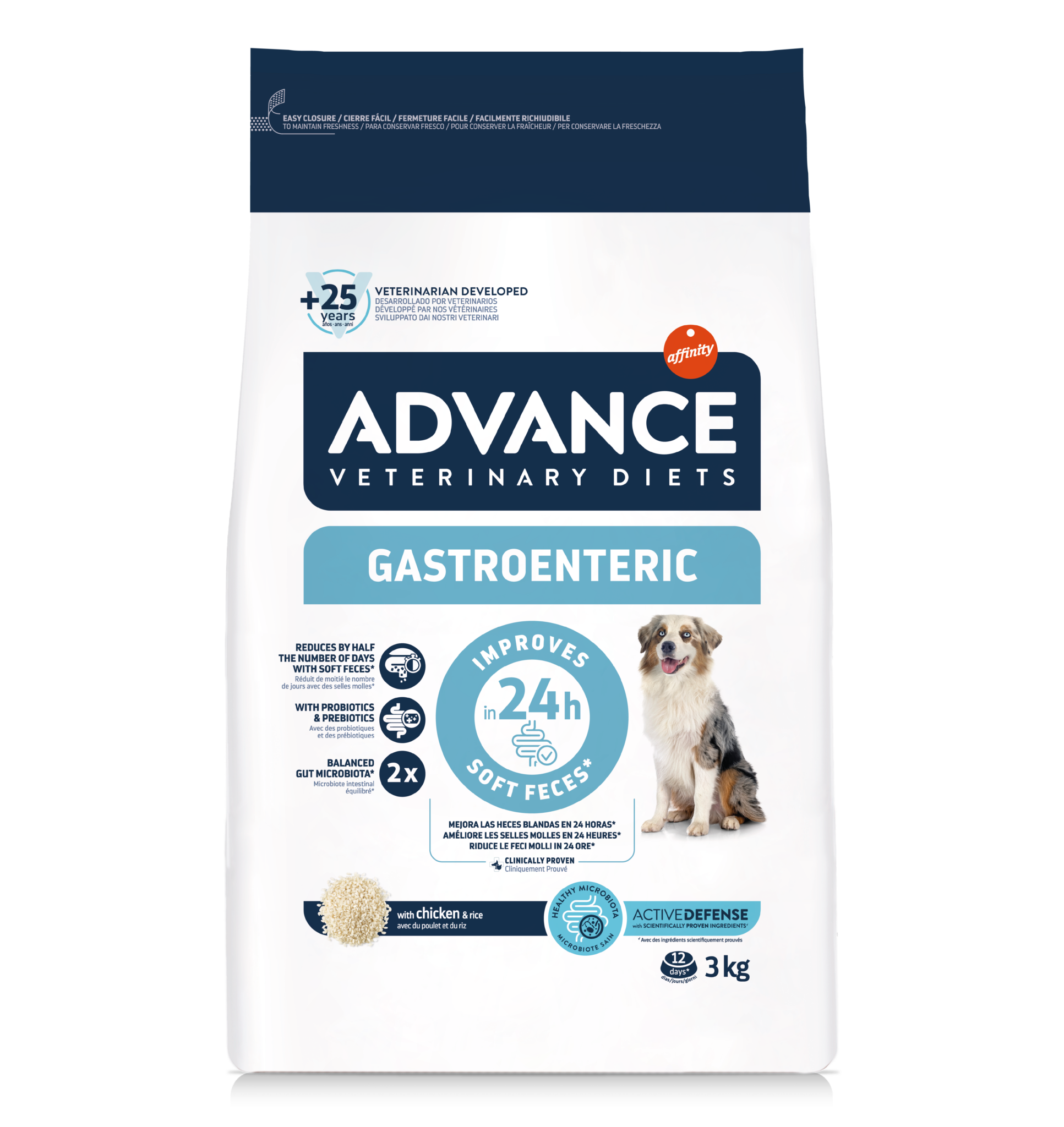 Advance Vet Gastroenteric รจ la scelta ideale per chi cerca un alimento dietetico di alta qualitร , specificamente studiato per il benessere gastrointestinale del cane. Disponibile in pratiche confezioni da 800g, 3kg e 12kg per adattarsi a tutte le esigenze.