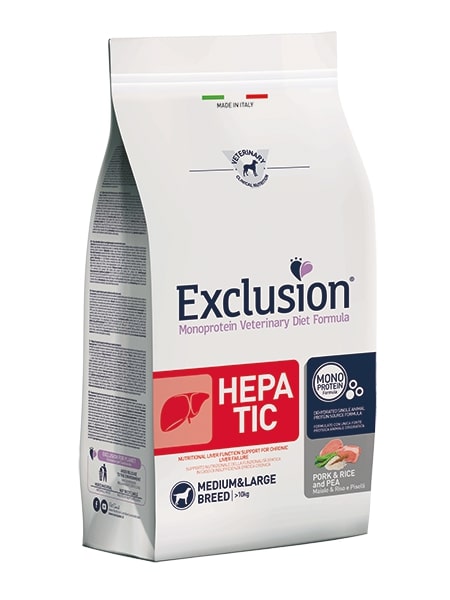 Scegli Exclusion Hepatic M&L per garantire al tuo cane un’alimentazione specifica e di alta qualitร , studiata per supportare la sua salute epatica e migliorare la sua qualitร  di vita. Disponibile in diverse grammature per soddisfare le esigenze del tuo cane. Il prezzo varia a seconda della confezione.