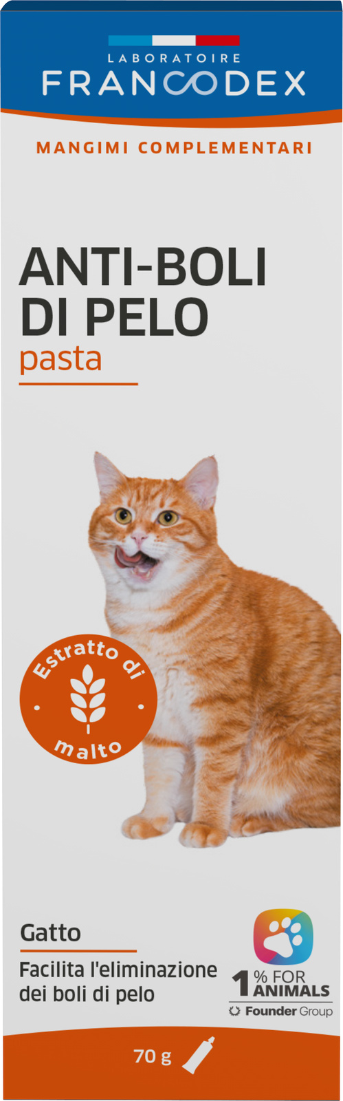 Francodex: Un marchio di fiducia per la salute e il benessere dei tuoi animali domestici. Scegli Francodex Anti Bolo di Pelo per un gatto felice e in salute!