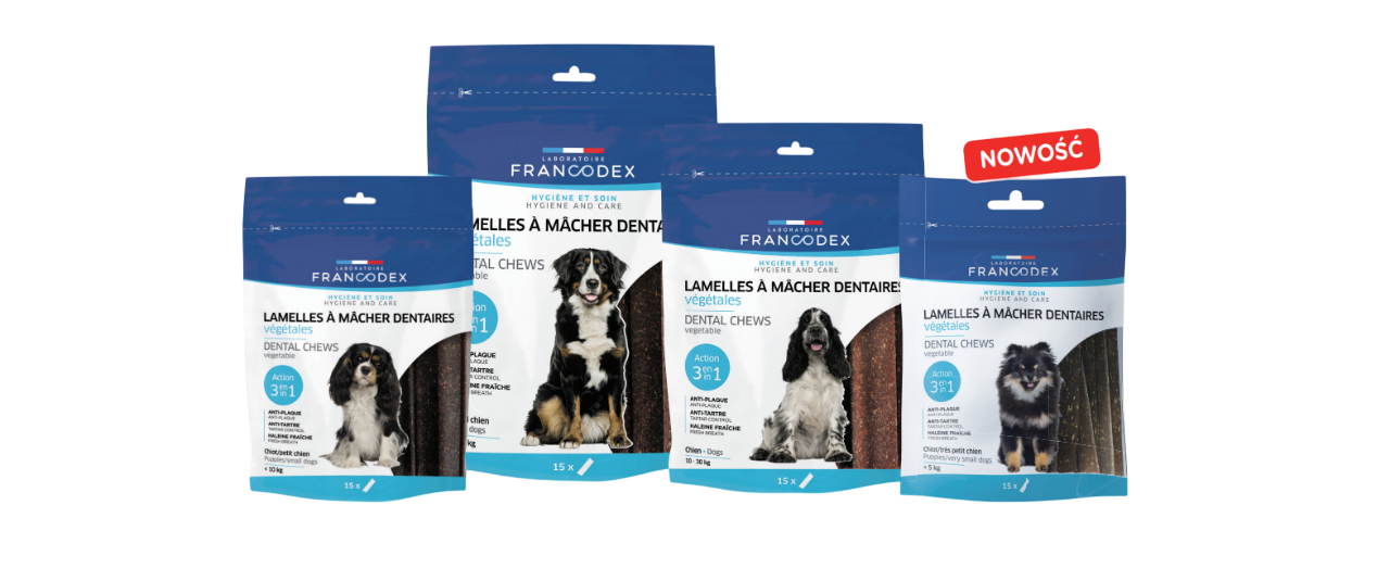 Le LAMELLE DA MASTICARE VEGETALI FRANCODEX contribuiscono a ridurre la formazione di placca e tartaro e a mantenere l’alito fresco. La forma a โZ” e la consistenza abrasiva sono state studiate per una pulizia meccanica efficace dei denti.