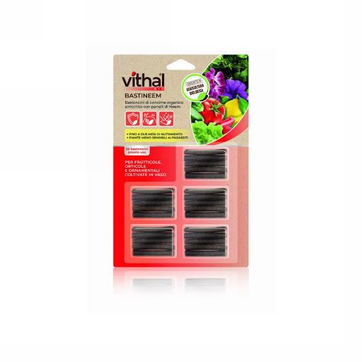 I Vithal Bio Bastoncini di Concime sono un fertilizzante solido specificamente studiato per nutrire piante in vaso e da giardino. Si presentano sotto forma di bastoncini pre-dosati, pensati per facilitare l’apporto di sostanze nutritive essenziali alle piante, favorendo una crescita sana e armoniosa. Questo prodotto è indicato per chi desidera un metodo pratico e pulito di concimazione, ideale per piante ornamentali e da interno.