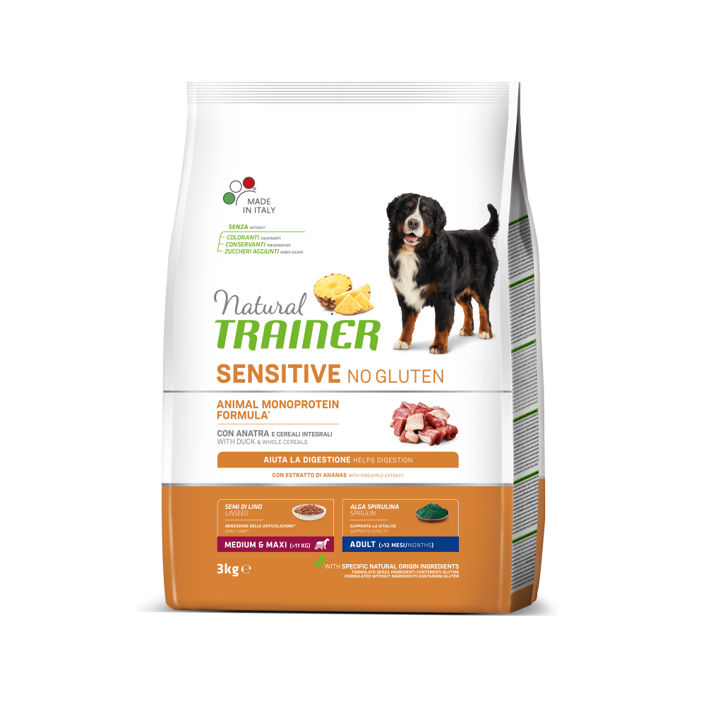 Natural Trainer Sensitive Medium/Maxi Puppy&Junior รจ la scelta ideale per chi desidera un alimento naturale, scientificamente bilanciato e specifico per la crescita dei cuccioli di taglia media e grande.
