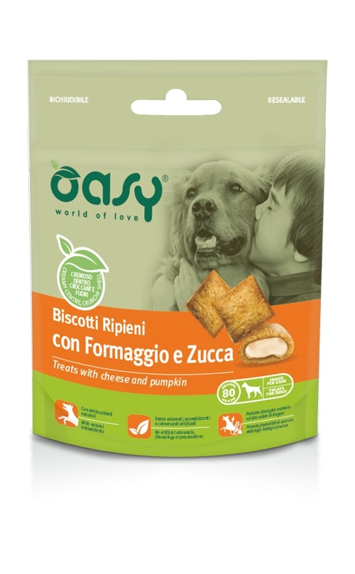 Oasy Biscotti Ripieni Formaggio e Zucca per Cani – 80g