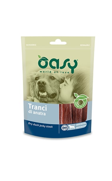 I Tranci di Anatra Oasy sono l’ideale per premiare il tuo cane durante l’addestramento o semplicemente per dimostrargli il tuo affetto. Scegli il meglio per il tuo amico peloso, scegli Oasy!