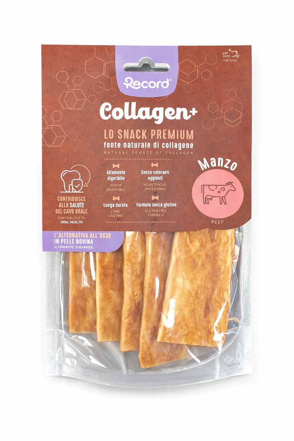 Record Snack Collagen+ Crackers Manzo è uno snack pensato per l’alimentazione degli animali domestici, specificamente formulato per offrire un’esperienza gustosa e funzionale. Si tratta di crackers al gusto manzo che possono essere utilizzati come snack o premio durante la giornata.