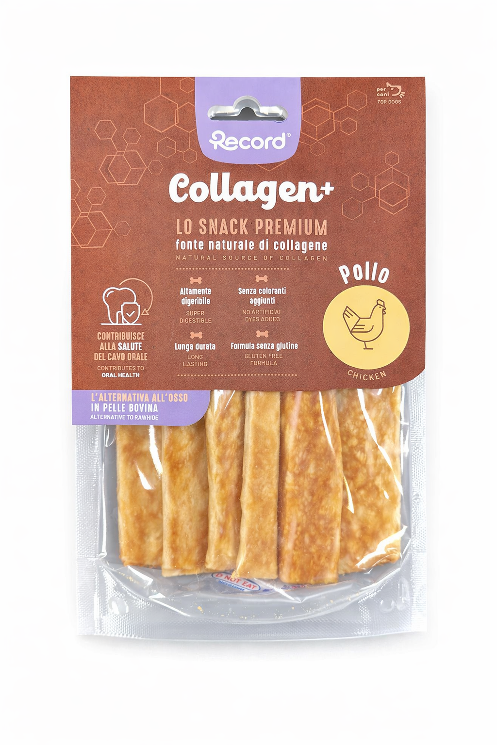 Record Snack Collagen+ Crackers Pollo è adatto a chi desidera integrare la dieta del proprio cane con uno snack gustoso e facile da somministrare. È una scelta indicata per momenti di ricompensa, per variare il gusto degli snack o per offrire un alimento alternativo al pasto principale.
