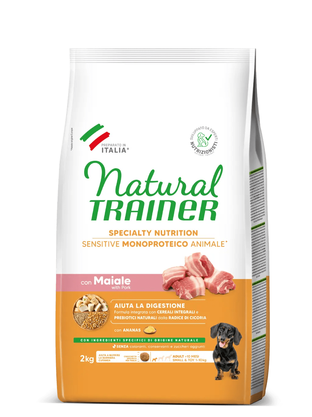 Trainer Sensitive Small&Toy Adult รจ un alimento completo ed equilibrato, studiato appositamente per cani adulti di taglia piccola e piccolissima con sensibilitร alimentari. La sua formula, sviluppata dai nutrizionisti di Natural Trainer, offre una nutrizione ottimale e favorisce il benessere del tuo cane, nel rispetto delle sue esigenze specifiche.