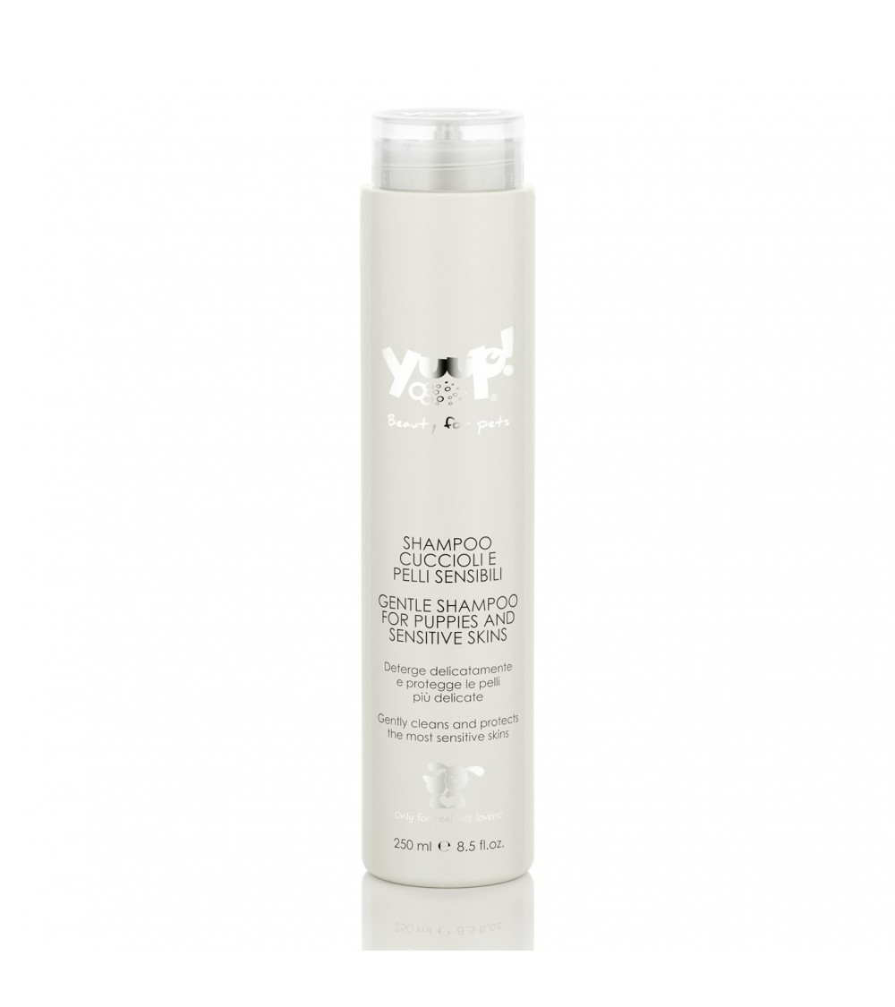 Shampoo Yuup! specifico per cuccioli e cani con pelli sensibili. Questo shampoo delicato da 250ml è formulato con ingredienti naturali per prendersi cura del manto e della cute del tuo amico a quattro zampe.