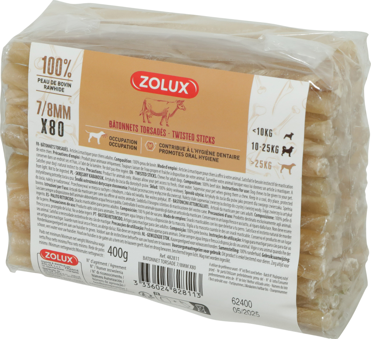 Parole chiave: snack per cani, bastoncini per cani, ZOLUX, bastoncini attorcigliati, snack cane, biscotti per cani, addestramento cani, cura dentale cani.
